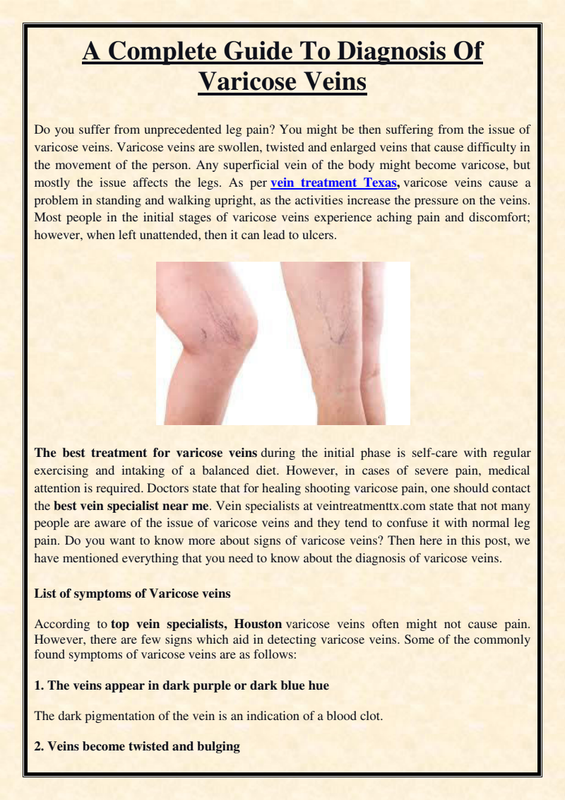 As the seriousness of this condition might increase with time, it is very important to see a good vein doctor upon observing any of the Venous Insufficiency Symptoms. Some of the common symptoms may include swelling in the lower legs or ankles; throbbing in the legs; weariness in the legs; recently showed up varicose veins; skin discoloration on the legs; stasis ulcers; and skin that shows up leathery on the legs. Waiting on these Venous Insufficiency Symptoms to disappear will certainly not be effective, so it is very important to see a medical professional instantly, as early Venous Insufficiency Treatment Houston of the concern might result in far better outcomes.